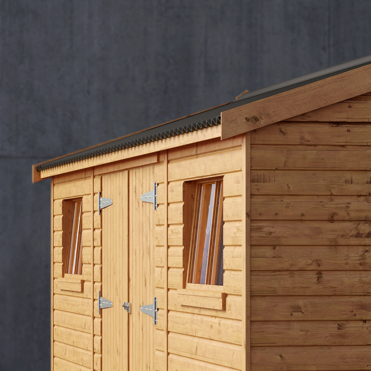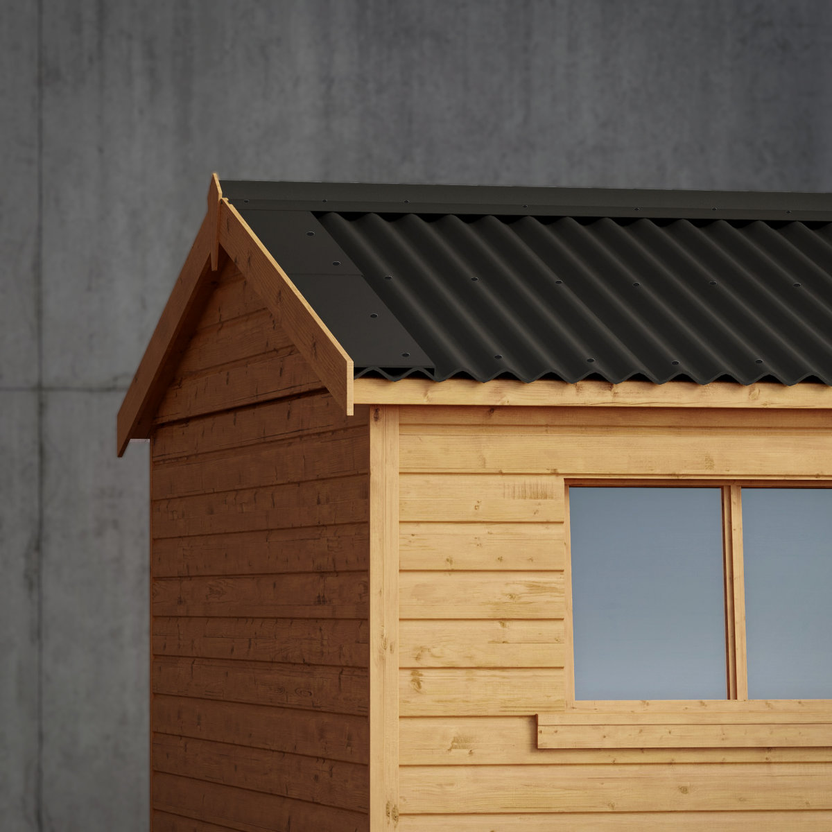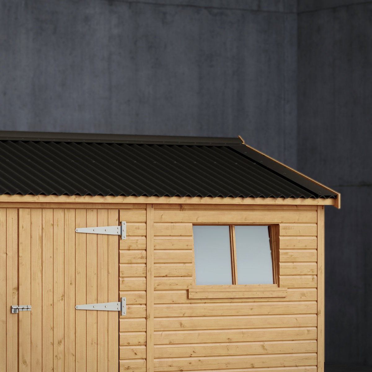 Crafted from premium Scandinavian redwood tongue-and-groove shiplap, the Rye combines lasting strength, refined style, and superior durability. Its solid boarded roof, topped with sleek black corrugated sheeting, offer excellent rigidity and weather protection.