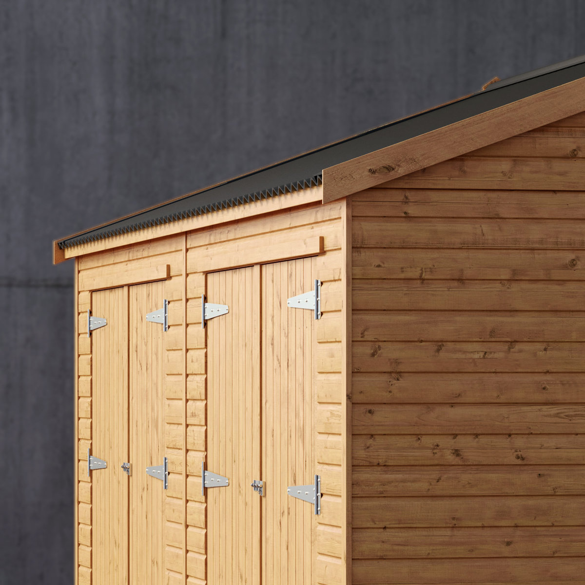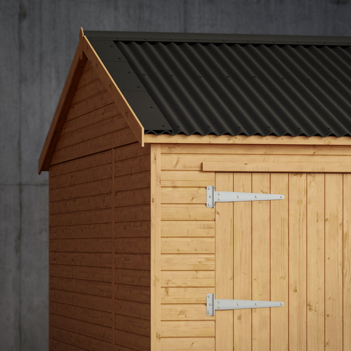 Crafted from premium Scandinavian redwood tongue-and-groove shiplap, the Hays offers impressive strength, style, and long-lasting durability. Its boarded roof, finished with smart black corrugated sheeting, adds extra rigidity and enhanced weather protection.